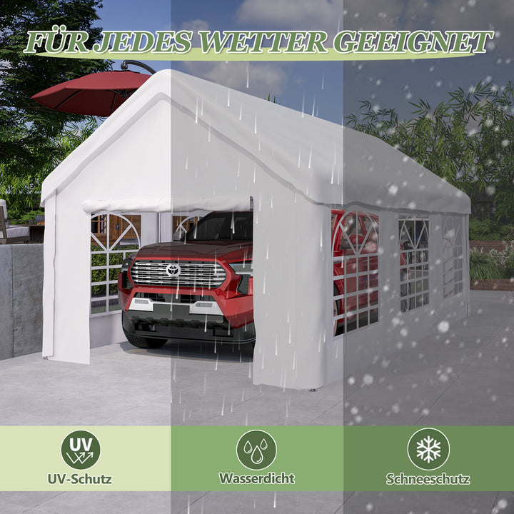 Abri de Stationnement 3x6 m - Tente Garage Imperméable avec Porte Enroulable pour Voiture, SUV et Camionnette - Parois et Toit Amovibles