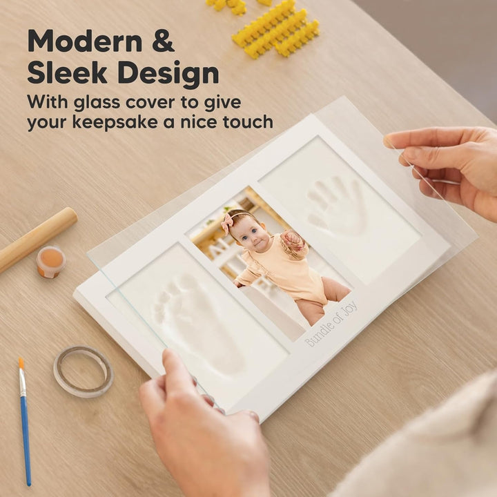 Baby Hand-Fußabdruck Set Gips mit Rahmen - Geschenk zur Geburt Alpine White