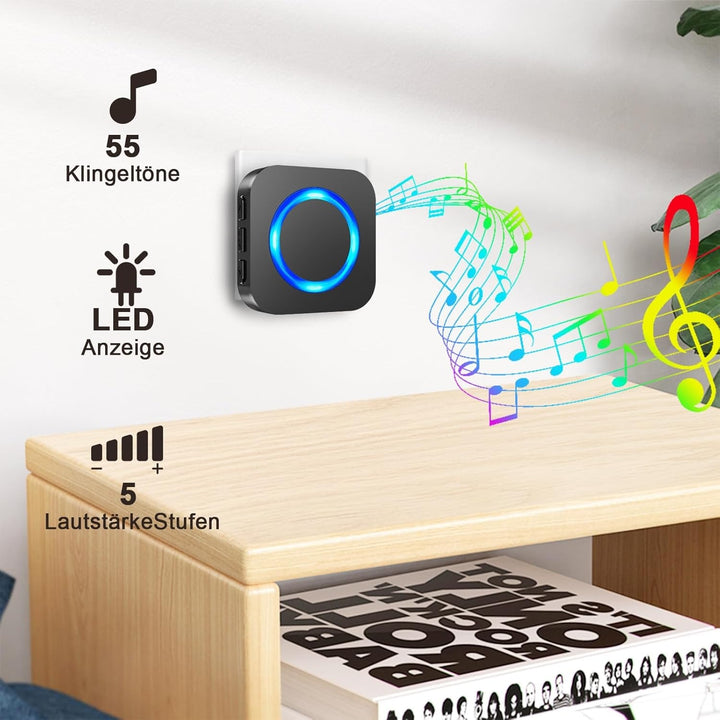 【Individueller Klang, Flexible Modi】Genießen Sie präzise Kontrolle mit 5 Lautstärkestufen bis zu 110 dB, ideal für Hörgeschädigte oder Senioren. Wechseln Sie einfach zwischen LED nur oder LED + Klingelmodus und wählen Sie aus 55 Melodien für individuelle Benachrichtigungen. Ihre letzten Einstellungen werden für ununterbrochene Bequemlichkeit gespeichert.