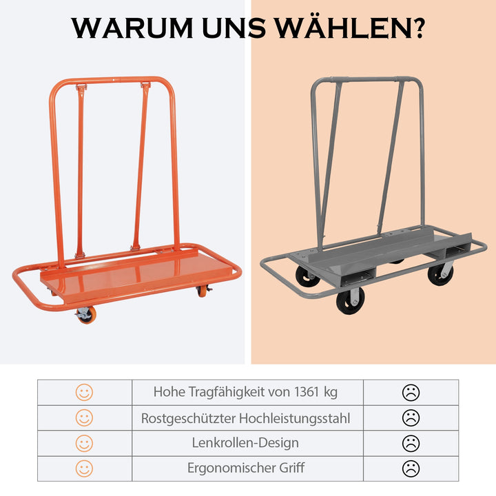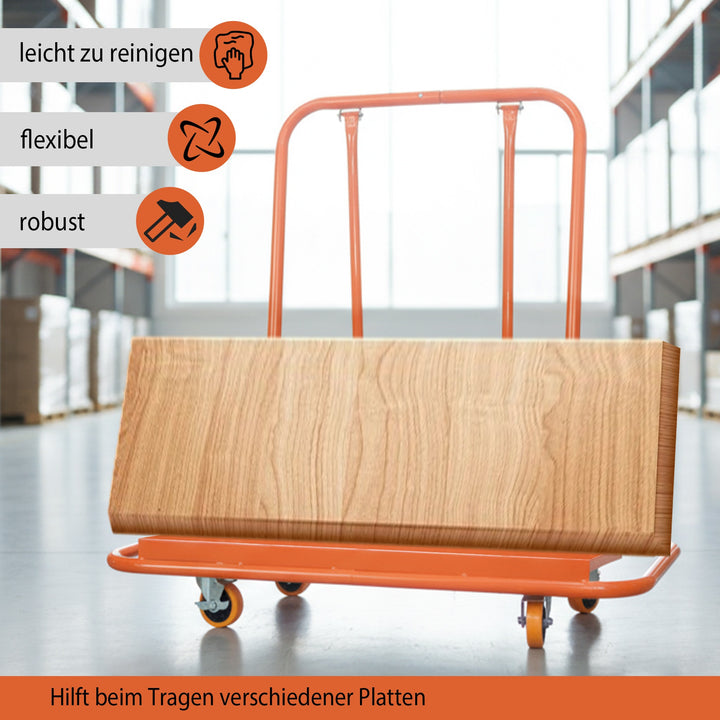 Avec une capacité de 1000 kg, ce chariot supporte sans effort les charges lourdes grâce à son design triangulaire renforcé et sa structure en acier épais. Idéal pour le transport de plaques de construction et panneaux divers.
