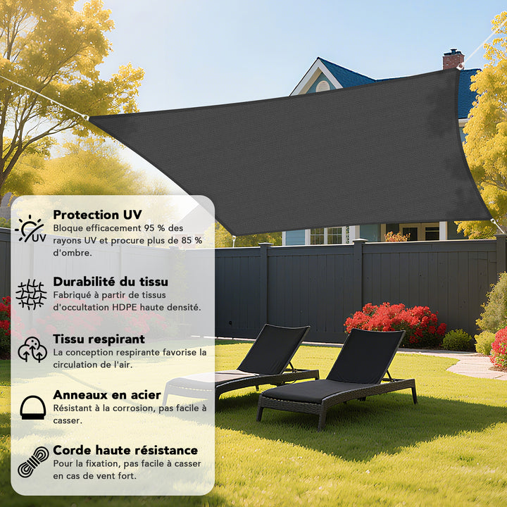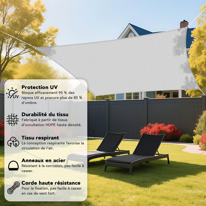 Solution d'ombrage polyvalente : idéale pour les terrasses, les jardins, les piscines et plus encore ; offre une protection solaire de 85 % à 88 % et bloque 95 % des rayons UV nocifs ; améliore l'intimité à l'extérieur et crée une ambiance fraîche et agréable.