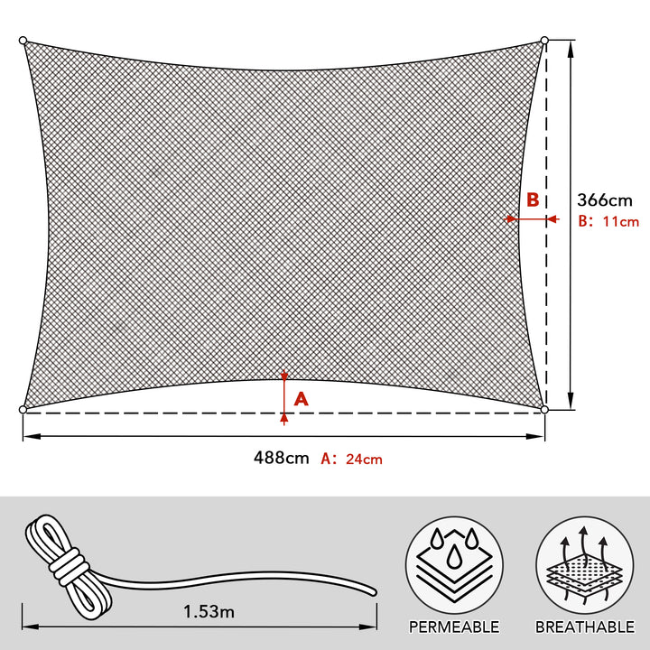 Conception respirante : le tissu favorise la circulation de l'air tout en offrant une ombre importante ; les bords incurvés empêchent l'accumulation d'eau de pluie, prolongeant ainsi la durée de vie de la voile d'ombrage ; non imperméable